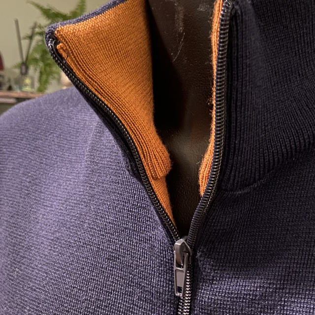 Questa giacca da uomo è realizzata interamente in lana merino extrafine. Il design pulito e contemporaneo si distingue per il collo alto, la chiusura full zip e il contrasto cromatico tra corpo e maniche, che dona carattere senza rinunciare alla versatilità.